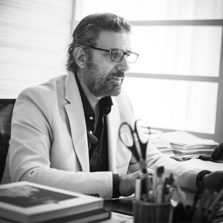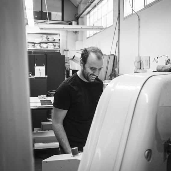 Stubborn and precise to the millimeter, he studied at Milan's Scuola Politecnica di Design, where he became passionate about visual communication and discovered an inordinate love for lettering and color. As a child, instead of houses and trees, he drew logos. As he grew up, he embraced the management skills of his entrepreneur father. A student of Heinz Waibl and Bruno Munari, he designs by repeating as a mantra a phrase of the latter: "Complicating is easy, simplifying is difficult."