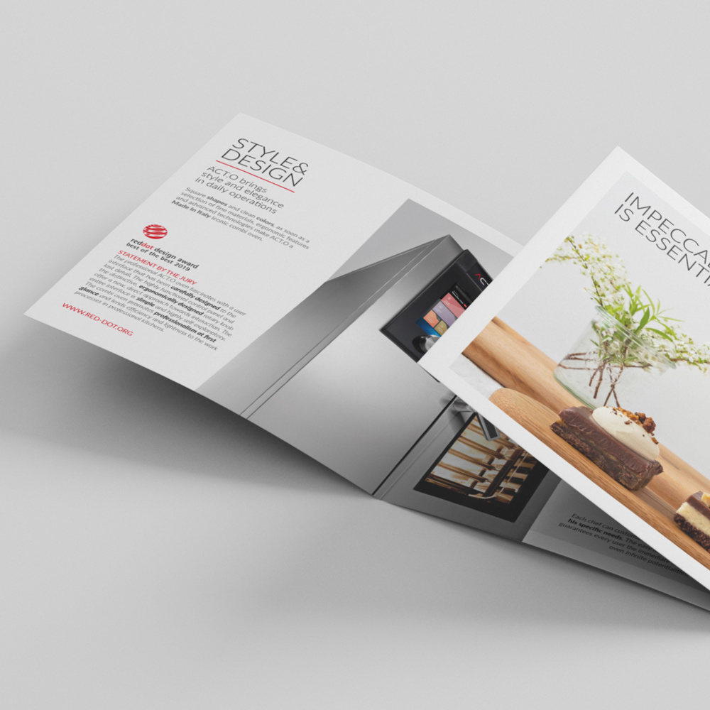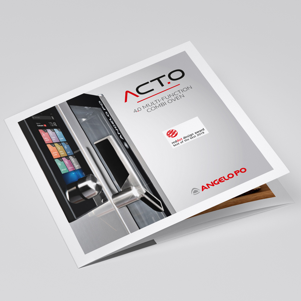 ACT.O è il nuovo forno combinato multifunzione dell'Angelo Po vincitore del Red Dot Award "Best of the Best 2019" per il quale abbiamo realizzato il servizio fotografico nella nostra sala posa, la brochure e il materiale promozionale.
